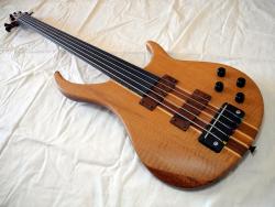 Und so ging es los: Der Hals bekam ein Ebenholz-Griffbrett mit 8mm Dicke und Fretlines in der Flanke und die Pickups Furniere aus Nuss-Wurzelholz.